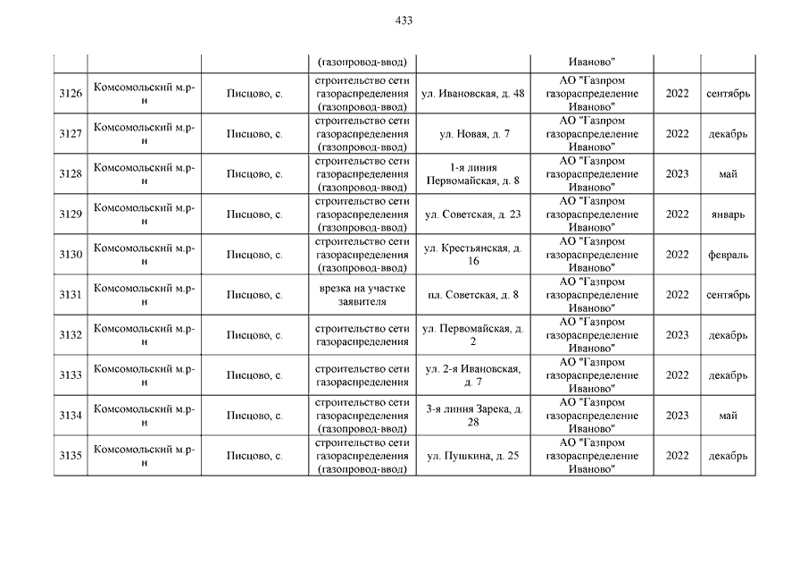 Постановление Правительства Ивановской области от 27.06.2024 N 278-п "О внесении изменений в постановление Правительства Ивановской области от 28.12.2020 N 678-п "Об утверждении региональной Программы газификации жилищно-коммунального хозяйства, промышленных и иных организаций Ивановской области на 2020 - 2030 годы" (вместе со "Сводным планом-графиком догазификации", "Пообъектным планом-графиком догазификации")