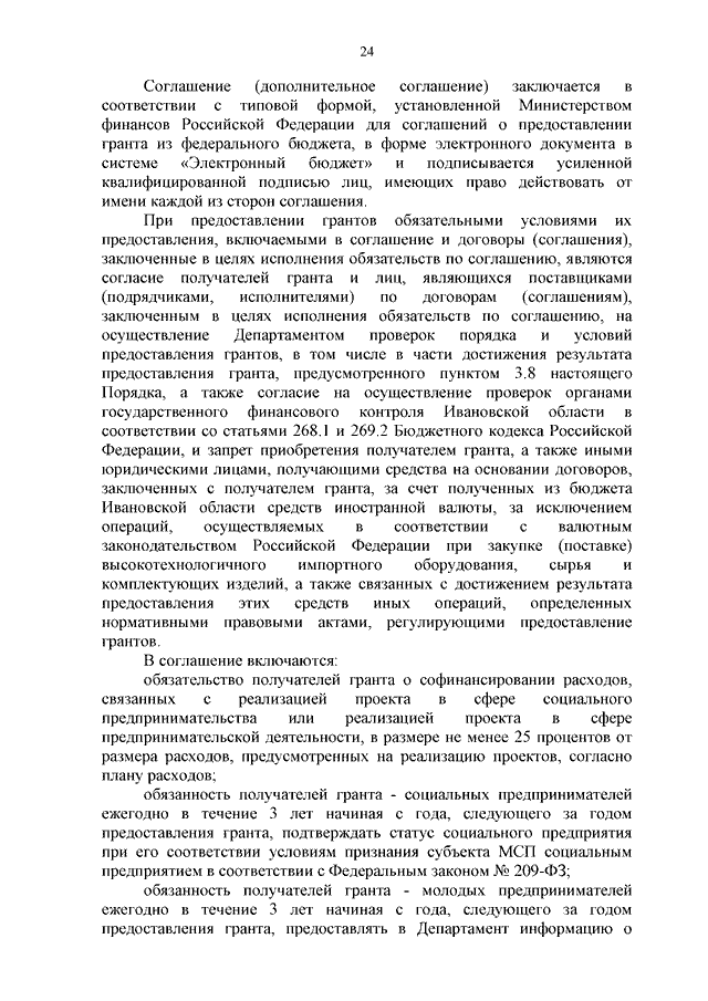 Постановление Правительства Ивановской области от 08.07.2024 N 294-п "О внесении изменений в постановление Правительства Ивановской области от 08.07.2021 N 311-п "Об утверждении Порядка определения объема и предоставления грантов в форме субсидий субъектам малого и среднего предпринимательства, осуществляющим деятельность в сфере социального предпринимательства, на реализацию проекта в сфере социального предпринимательства и (или) субъектам малого и среднего предпринимательства, созданным физическими лицами в возрасте до 25 лет включительно, на реализацию проекта в сфере предпринимательской деятельности"