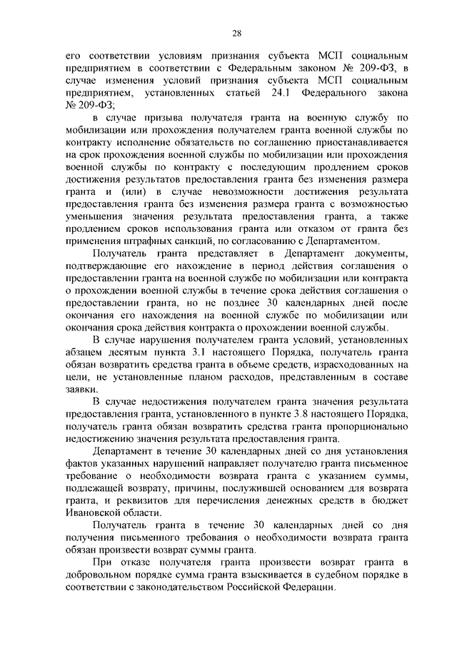 Постановление Правительства Ивановской области от 08.07.2024 N 294-п "О внесении изменений в постановление Правительства Ивановской области от 08.07.2021 N 311-п "Об утверждении Порядка определения объема и предоставления грантов в форме субсидий субъектам малого и среднего предпринимательства, осуществляющим деятельность в сфере социального предпринимательства, на реализацию проекта в сфере социального предпринимательства и (или) субъектам малого и среднего предпринимательства, созданным физическими лицами в возрасте до 25 лет включительно, на реализацию проекта в сфере предпринимательской деятельности"