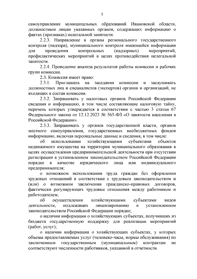 Постановление Правительства Ивановской области от 05.08.2024 N 341-п "О мерах по противодействию нелегальной занятости в Ивановской области" (вместе с "Положением о межведомственной комиссии Ивановской области по противодействию нелегальной занятости", "Перечнем муниципальных образований Ивановской области, на территориях которых должны быть созданы рабочие группы межведомственной комиссии по противодействию нелегальной занятости в Ивановской области, являющиеся ее неотъемлемой частью", "Положением о порядке создания и деятельности рабочих групп межведомственной комиссии Ивановской области по противодействию нелегальной занятости")