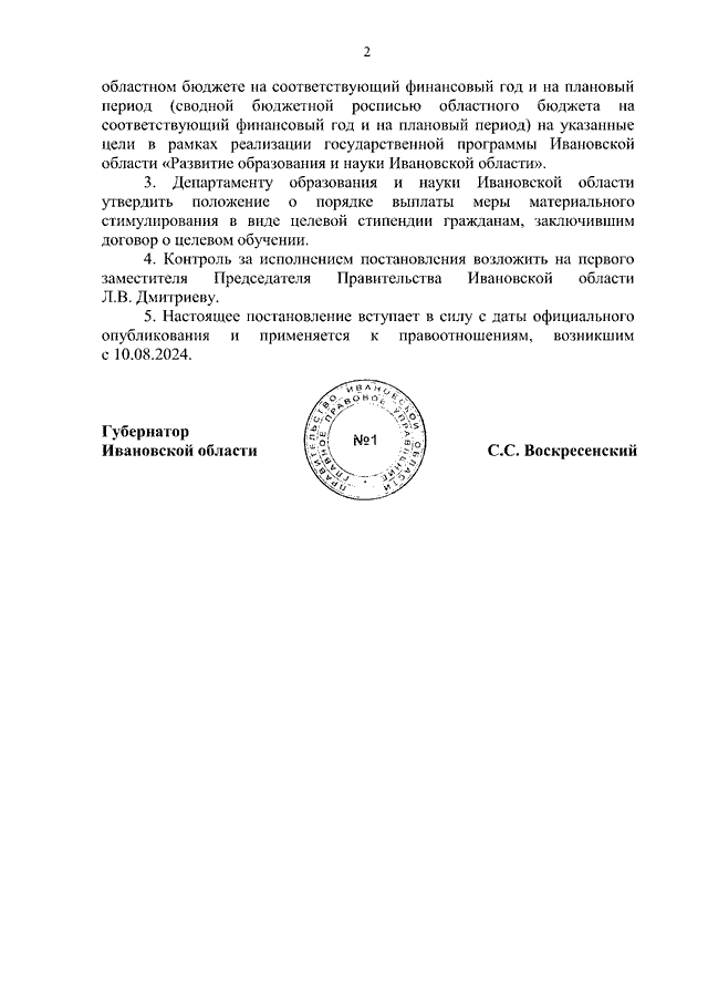 Постановление Правительства Ивановской области от 30.08.2024 N 386-п "О предоставлении меры материального стимулирования гражданам, заключившим договор о целевом обучении по образовательным программам среднего профессионального или высшего образования в государственных образовательных организациях, расположенных на территории Ивановской области"