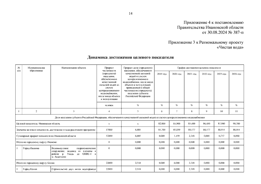 Постановление Правительства Ивановской области от 30.08.2024 N 387-п "О внесении изменений в постановление Правительства Ивановской области от 06.12.2017 N 458-п "Об утверждении государственной программы Ивановской области "Обеспечение услугами жилищно-коммунального хозяйства населения Ивановской области" (вместе с "Прогнозом тарифных последствий реализации мероприятий по повышению качества водоснабжения")