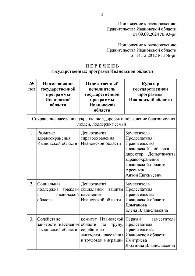 Распоряжение Правительства Ивановской области от 09.09.2024 N 93-рп "О внесении изменения в распоряжение Правительства Ивановской области от 14.12.2012 N 356-рп "Об утверждении перечня государственных программ Ивановской области"
