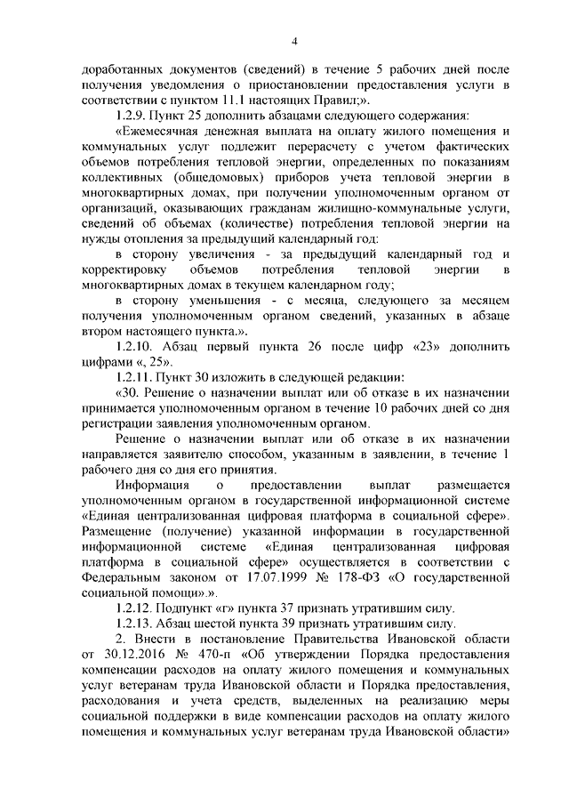 Постановление Правительства Ивановской области от 11.09.2024 N 398-п "О внесении изменений в постановления Правительства Ивановской области от 15.12.2008 N 329-п "Об утверждении Правил предоставления ежемесячной денежной выплаты на оплату жилого помещения и коммунальных услуг и ежегодной денежной выплаты на оплату топлива, расчета и перерасчета их размера отдельным категориям граждан, проживающим в Ивановской области, и Порядка предоставления, расходования и учета средств, выделенных на реализацию мер социальной поддержки отдельным категориям граждан по оплате жилого помещения и коммунальных услуг" и от 30.12.2016 N 470-п "Об утверждении Порядка предоставления компенсации расходов на оплату жилого помещения и коммунальных услуг ветеранам труда Ивановской области и Порядка предоставления, расходования и учета средств, выделенных на реализацию меры социальной поддержки в виде компенсации расходов на оплату жилого помещения и коммунальных услуг ветеранам труда Ивановской области"