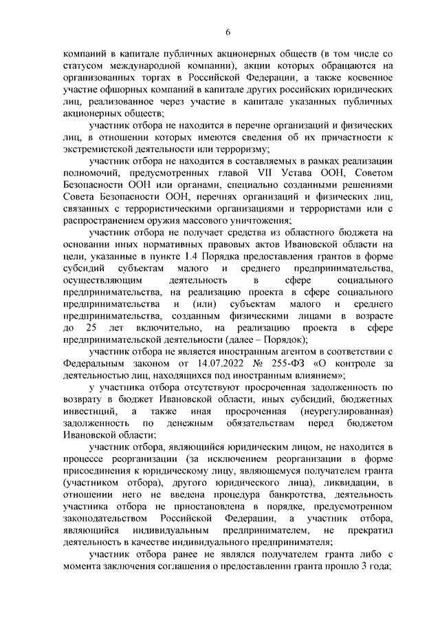 Постановление Правительства Ивановской области от 18.09.2024 N 408-п "О внесении изменений в постановление Правительства Ивановской области от 08.07.2021 N 311-п "Об утверждении Порядка предоставления грантов в форме субсидий субъектам малого и среднего предпринимательства, осуществляющим деятельность в сфере социального предпринимательства, на реализацию проекта в сфере социального предпринимательства и (или) субъектам малого и среднего предпринимательства, созданным физическими лицами в возрасте до 25 лет включительно, на реализацию проекта в сфере предпринимательской деятельности"