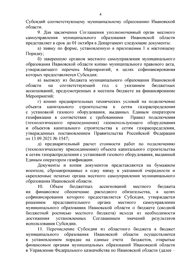 Постановление Правительства Ивановской области от 23.09.2024 N 423-п "Об утверждении Порядка предоставления и распределения субсидий из областного бюджета бюджетам муниципальных образований Ивановской области на подключение (технологическое присоединение) к сетям газораспределения с установкой газоиспользующего оборудования объекта капитального строительства в рамках иных непрограммных мероприятий по наказам избирателей депутатам Ивановской областной Думы в 2024 году"