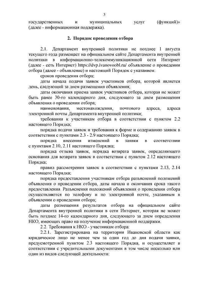 Постановление Правительства Ивановской области от 23.09.2024 N 422-п "О внесении изменения в постановление Правительства Ивановской области от 30.03.2012 N 107-п "О порядке, объемах и условиях предоставления поддержки социально ориентированным некоммерческим организациям, зарегистрированным и действующим на территории Ивановской области" (вместе с "Порядком проведения отбора социально ориентированных некоммерческих организаций для оказания информационной поддержки в форме содействия в создании официальных сайтов в информационно-телекоммуникационной сети Интернет и (или) обеспечении их функционирования путем использования федеральной государственной информационной системы "Единый портал государственных и муниципальных услуг (функций)")
