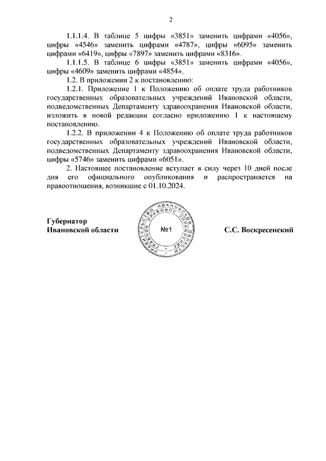 Постановление Правительства Ивановской области от 09.10.2024 N 457-п "О внесении изменений в постановление Правительства Ивановской области от 30.12.2015 N 642-п "О системе оплаты труда работников государственных учреждений Ивановской области, подведомственных Департаменту здравоохранения Ивановской области"
