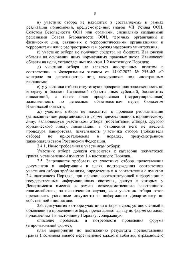 Постановление Правительства Ивановской области от 09.10.2024 N 454-п "О внесении изменений в постановление Правительства Ивановской области от 11.08.2023 N 364-п "О Порядке предоставления некоммерческим организациям грантов в форме субсидий на финансовое обеспечение реализации мероприятий в сфере молодежной политики на территории Ивановской области"
