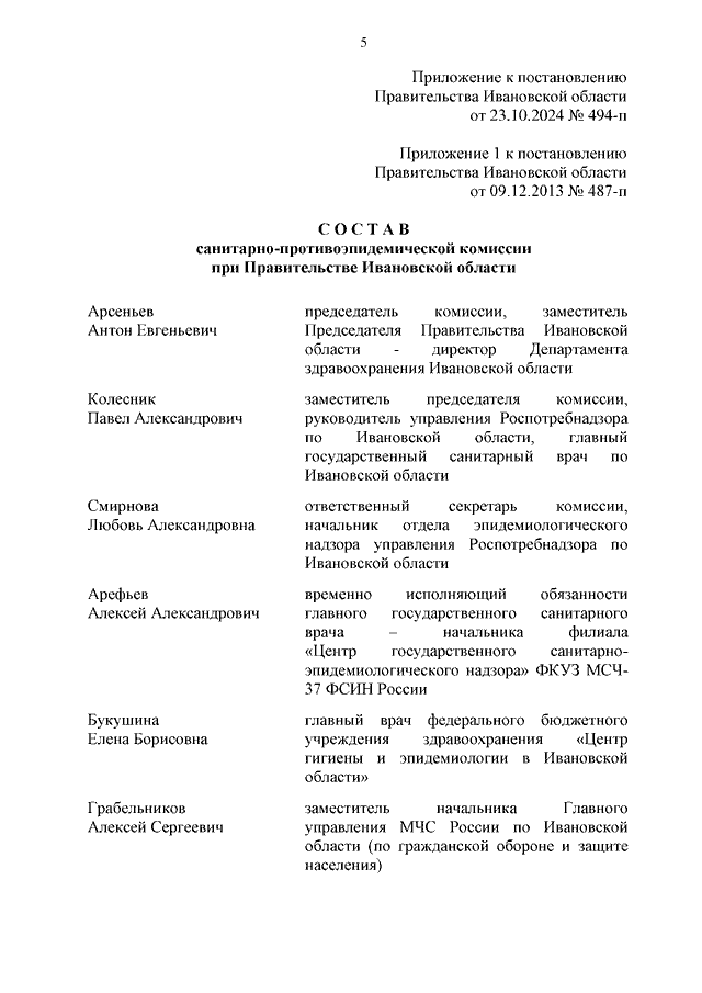 Постановление Правительства Ивановской области от 23.10.2024 N 494-п "О внесении изменений в постановление Правительства Ивановской области от 09.12.2013 N 487-п "О санитарно-противоэпидемической комиссии при Правительстве Ивановской области"
