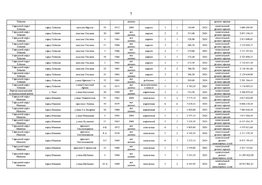 Постановление Правительства Ивановской области от 29.10.2024 N 522-п "О внесении изменения в постановление Правительства Ивановской области от 25.03.2024 N 106-п "Об утверждении краткосрочного плана реализации региональной программы капитального ремонта общего имущества в многоквартирных домах, расположенных на территории Ивановской области, на 2024 - 2026 годы"