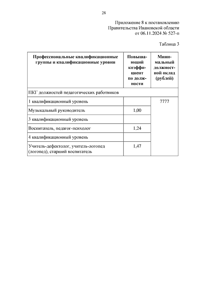 Постановление Правительства Ивановской области от 06.11.2024 N 527-п "О внесении изменений в постановление Правительства Ивановской области от 31.12.2008 N 366-п "О системе оплаты труда работников государственных учреждений системы социальной защиты населения Ивановской области" (вместе с "Перечнем профессиональных квалификационных групп должностей работников государственных учреждений системы социальной защиты населения Ивановской области", "Перечнем профессиональных квалификационных групп должностей работников государственных образовательных учреждений для детей-сирот и детей, оставшихся без попечения родителей, Ивановской области")