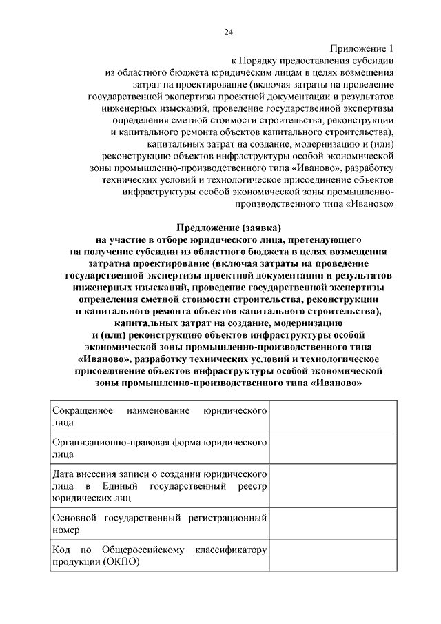 Постановление Правительства Ивановской области от 06.11.2024 N 535-п "О внесении изменений в постановление Правительства Ивановской области от 15.11.2023 N 568-п "Об утверждении Порядка предоставления субсидии из областного бюджета юридическим лицам в целях возмещения затрат на проектирование (включая затраты на проведение государственной экспертизы проектной документации и результатов инженерных изысканий, проведение государственной экспертизы определения сметной стоимости строительства, реконструкции и капитального ремонта объектов капитального строительства), капитальных затрат на создание, модернизацию и (или) реконструкцию объектов инфраструктуры особой экономической зоны промышленно-производственного типа "Иваново", разработку технических условий и технологическое присоединение объектов инфраструктуры особой экономической зоны промышленно-производственного типа "Иваново"