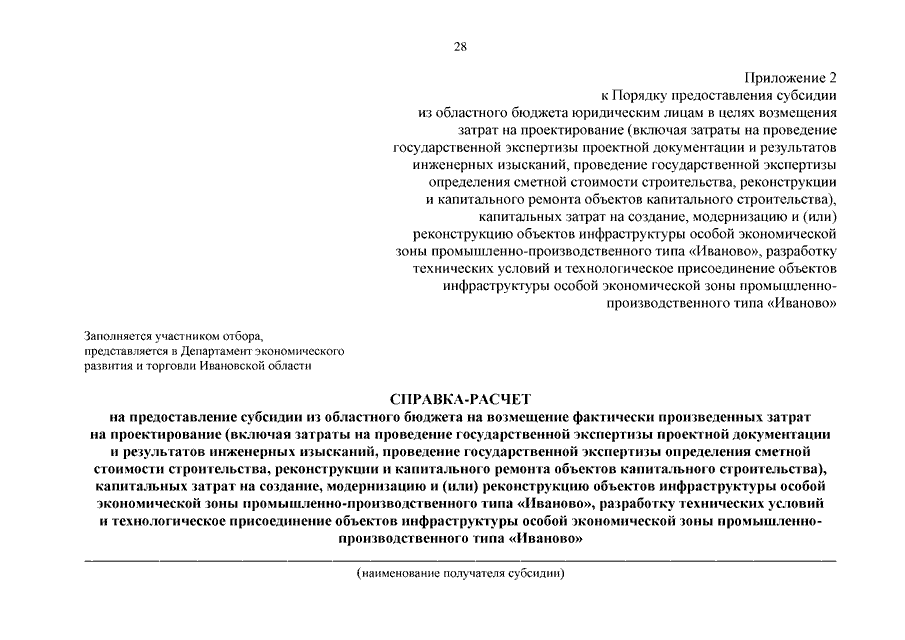 Постановление Правительства Ивановской области от 06.11.2024 N 535-п "О внесении изменений в постановление Правительства Ивановской области от 15.11.2023 N 568-п "Об утверждении Порядка предоставления субсидии из областного бюджета юридическим лицам в целях возмещения затрат на проектирование (включая затраты на проведение государственной экспертизы проектной документации и результатов инженерных изысканий, проведение государственной экспертизы определения сметной стоимости строительства, реконструкции и капитального ремонта объектов капитального строительства), капитальных затрат на создание, модернизацию и (или) реконструкцию объектов инфраструктуры особой экономической зоны промышленно-производственного типа "Иваново", разработку технических условий и технологическое присоединение объектов инфраструктуры особой экономической зоны промышленно-производственного типа "Иваново"
