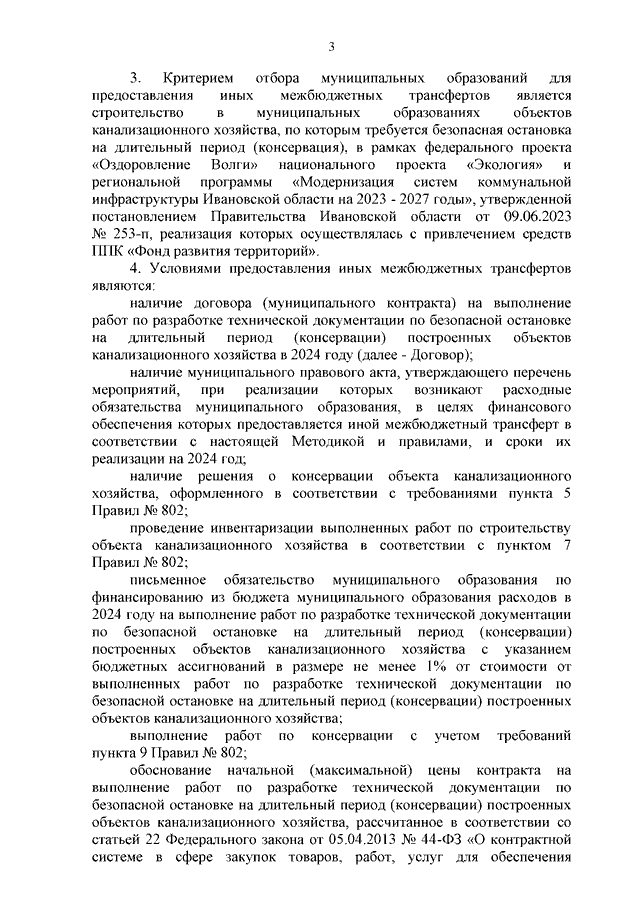 Постановление Правительства Ивановской области от 13.11.2024 N 545-п "Об установлении расходного обязательства и внесении изменений в постановление Правительства Ивановской области от 06.12.2017 N 458-п "Об утверждении государственной программы Ивановской области "Обеспечение услугами жилищно-коммунального хозяйства населения Ивановской области" (вместе с "Методикой распределения и правилами предоставления из областного бюджета бюджетам муниципальных образований Ивановской области иных межбюджетных трансфертов в случае софинансирования, в том числе в полном объеме, расходных обязательств муниципальных образований Ивановской области, возникших в 2024 году при выполнении работ по разработке технической документации по безопасной остановке на длительный период (консервации) построенных объектов канализационного хозяйства")