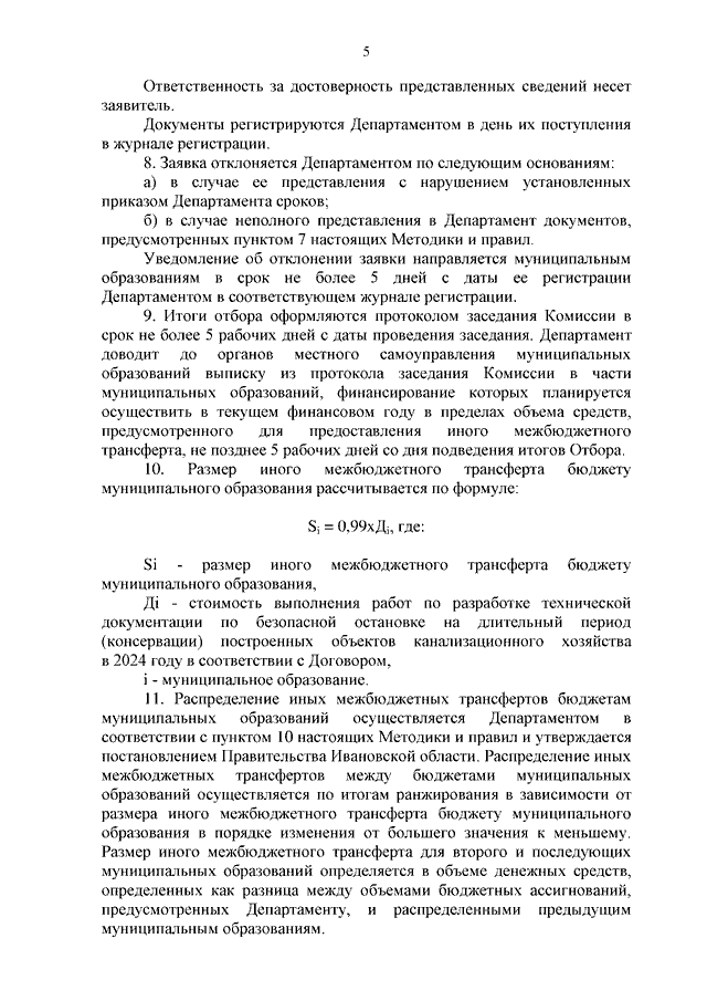 Постановление Правительства Ивановской области от 13.11.2024 N 545-п "Об установлении расходного обязательства и внесении изменений в постановление Правительства Ивановской области от 06.12.2017 N 458-п "Об утверждении государственной программы Ивановской области "Обеспечение услугами жилищно-коммунального хозяйства населения Ивановской области" (вместе с "Методикой распределения и правилами предоставления из областного бюджета бюджетам муниципальных образований Ивановской области иных межбюджетных трансфертов в случае софинансирования, в том числе в полном объеме, расходных обязательств муниципальных образований Ивановской области, возникших в 2024 году при выполнении работ по разработке технической документации по безопасной остановке на длительный период (консервации) построенных объектов канализационного хозяйства")
