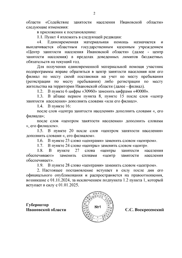 Постановление Правительства Ивановской области от 20.11.2024 N 558-п "О внесении изменений в постановление Правительства Ивановской области от 28.01.2019 N 16-п "Об утверждении порядка и условий выплаты единовременной материальной помощи на обустройство отдельным категориям участников подпрограммы "Оказание содействия добровольному переселению в Ивановскую область соотечественников, проживающих за рубежом" государственной программы Ивановской области "Содействие занятости населения Ивановской области"
