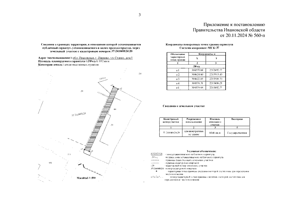 Постановление Правительства Ивановской области от 20.11.2024 N 560-п "Об установлении публичного сервитута в интересах Ивановской области"