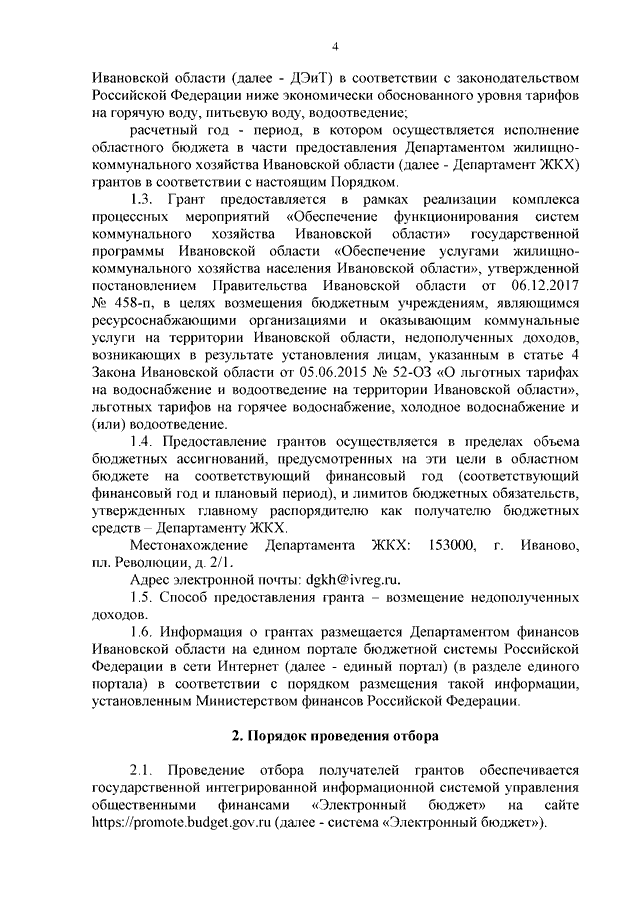 Постановление Правительства Ивановской области от 20.11.2024 N 563-п "Об утверждении Порядка предоставления грантов в форме субсидий ресурсоснабжающим организациям на возмещение недополученных доходов, образующихся в результате применения льготных тарифов на горячее водоснабжение, холодное водоснабжение, водоотведение"
