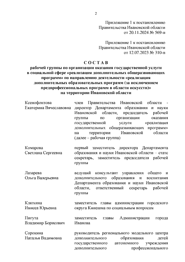 Постановление Правительства Ивановской области от 20.11.2024 N 569-п "О внесении изменений в постановление Правительства Ивановской области от 12.07.2023 N 310-п "Об организации оказания государственных услуг в социальной сфере при формировании государственного социального заказа на оказание государственных услуг в социальной сфере на территории Ивановской области"