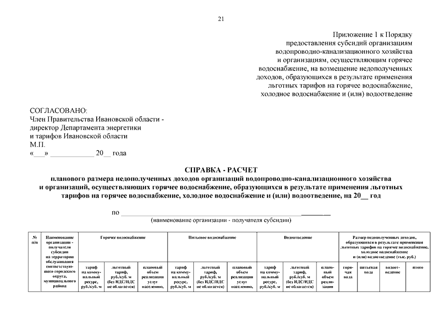 Постановление Правительства Ивановской области от 20.11.2024 N 573-п "О внесении изменений в постановление Правительства Ивановской области от 25.03.2016 N 73-п "О предоставлении субсидий организациям водопроводно-канализационного хозяйства и организациям, осуществляющим горячее водоснабжение, на возмещение недополученных доходов, образующихся в результате применения льготных тарифов на горячее водоснабжение, холодное водоснабжение и (или) водоотведение" (вместе с "Порядком предоставления субсидий организациям водопроводно-канализационного хозяйства и организациям, осуществляющим горячее водоснабжение, на возмещение недополученных доходов, образующихся в результате применения льготных тарифов на горячее водоснабжение, холодное водоснабжение и (или) водоотведение")