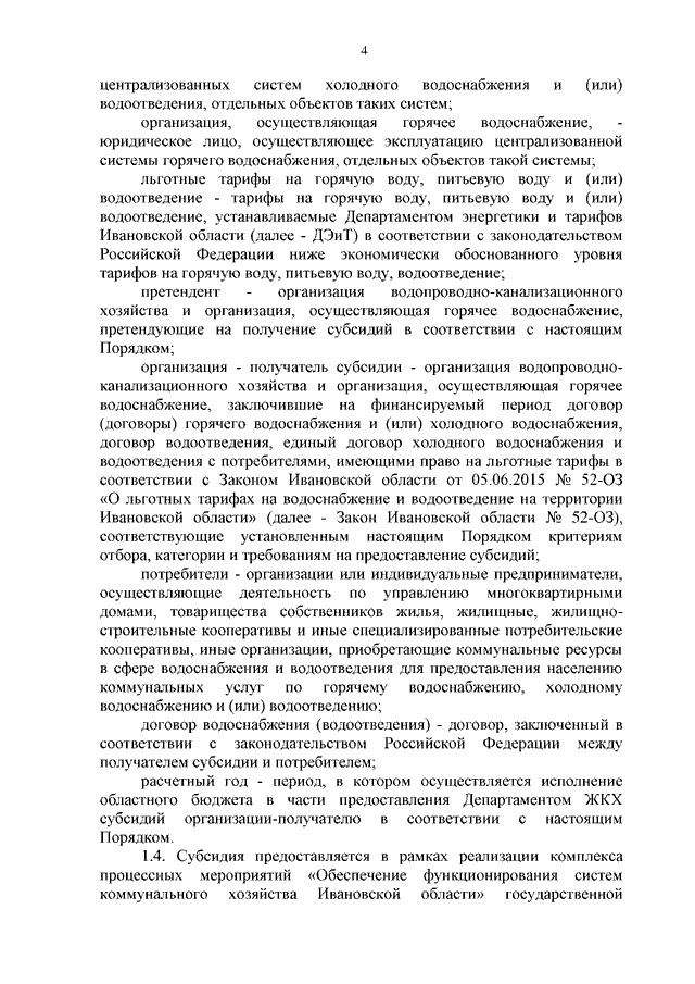 Постановление Правительства Ивановской области от 20.11.2024 N 573-п "О внесении изменений в постановление Правительства Ивановской области от 25.03.2016 N 73-п "О предоставлении субсидий организациям водопроводно-канализационного хозяйства и организациям, осуществляющим горячее водоснабжение, на возмещение недополученных доходов, образующихся в результате применения льготных тарифов на горячее водоснабжение, холодное водоснабжение и (или) водоотведение" (вместе с "Порядком предоставления субсидий организациям водопроводно-канализационного хозяйства и организациям, осуществляющим горячее водоснабжение, на возмещение недополученных доходов, образующихся в результате применения льготных тарифов на горячее водоснабжение, холодное водоснабжение и (или) водоотведение")