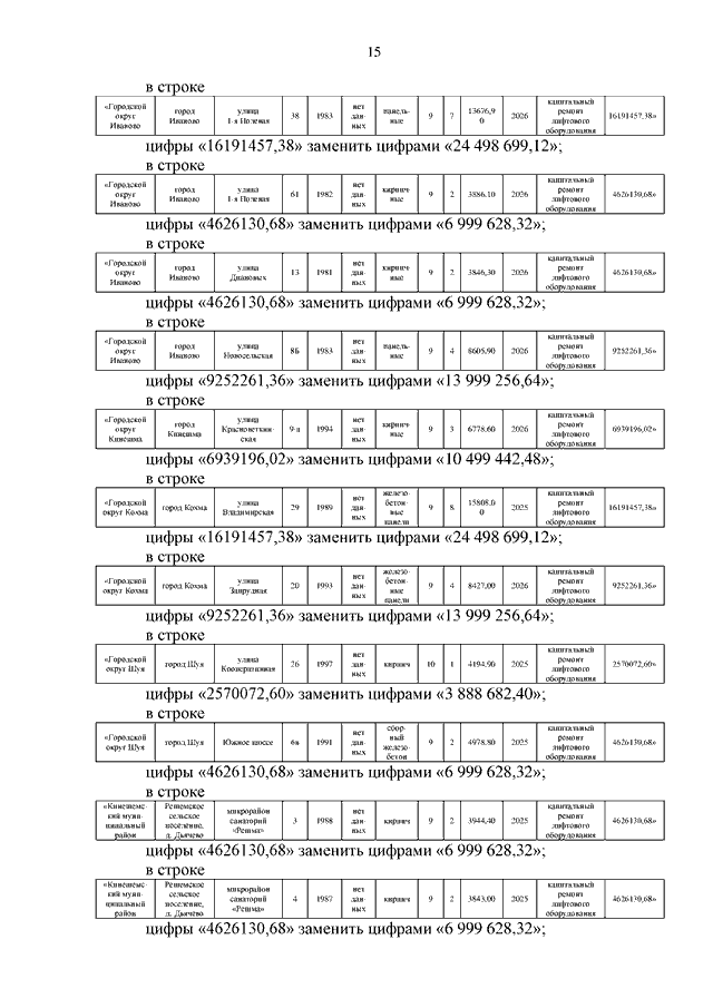 Постановление Правительства Ивановской области от 04.12.2024 N 598-п "О внесении изменения в постановление Правительства Ивановской области от 25.03.2024 N 106-п "Об утверждении краткосрочного плана реализации региональной программы капитального ремонта общего имущества в многоквартирных домах, расположенных на территории Ивановской области, на 2024 - 2026 годы"