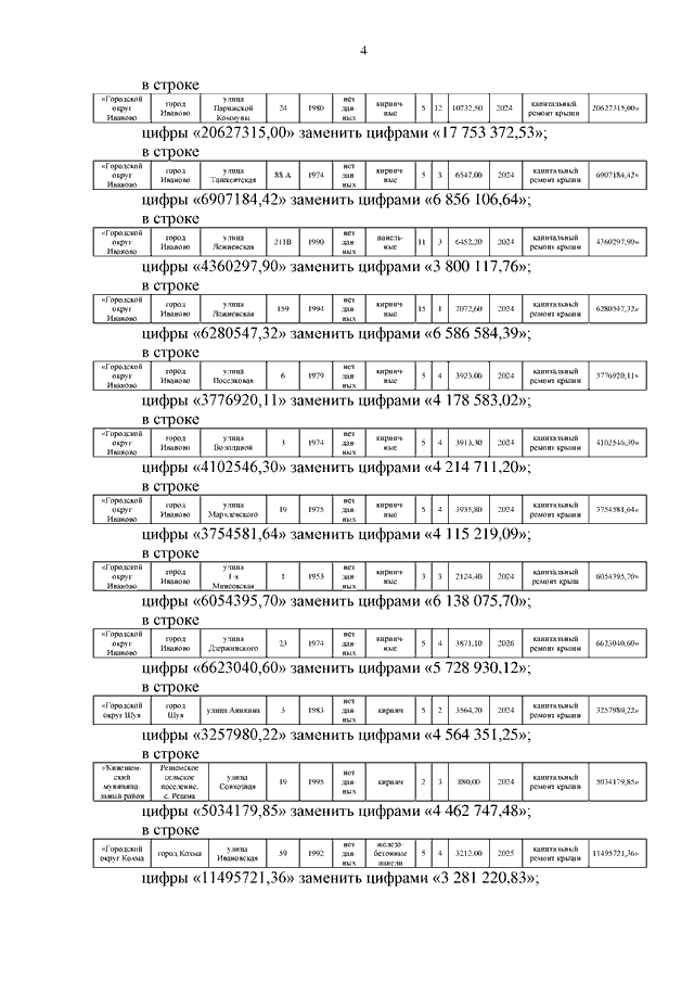 Постановление Правительства Ивановской области от 04.12.2024 N 598-п "О внесении изменения в постановление Правительства Ивановской области от 25.03.2024 N 106-п "Об утверждении краткосрочного плана реализации региональной программы капитального ремонта общего имущества в многоквартирных домах, расположенных на территории Ивановской области, на 2024 - 2026 годы"