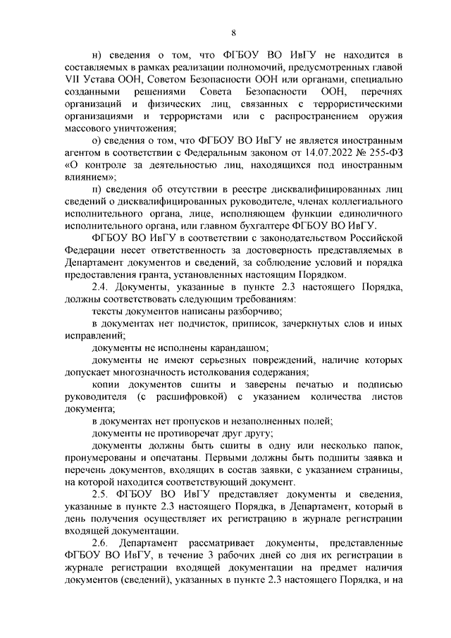 Постановление Правительства Ивановской области от 11.12.2024 N 603-п "Об утверждении Порядка предоставления грантов в форме субсидий из бюджета Ивановской области на реализацию проектов федеральных государственных организаций высшего образования, предусмотренных программами развития федеральных государственных организаций высшего образования, а также формирование инфраструктуры федеральных государственных организаций высшего образования"