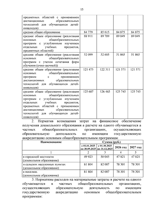 Постановление Правительства Ивановской области от 25.12.2024 N 657-п "Об утверждении нормативов обеспечения государственных гарантий реализации прав на получение общедоступного и бесплатного общего образования, обеспечения дополнительного образования в муниципальных образовательных организациях и возмещения затрат на финансовое обеспечение получения общего образования в частных образовательных организациях на 2025 год и на плановый период 2026 и 2027 годов" (вместе с "Нормативами обеспечения государственных гарантий реализации прав на получение общедоступного и бесплатного дошкольного, начального общего, основного общего, среднего общего образования в муниципальных общеобразовательных организациях, обеспечения дополнительного образования в муниципальных общеобразовательных организациях на 2025 год и на плановый период 2026 и 2027 годов", "Нормативами возмещения затрат на финансовое обеспечение получения дошкольного, начального общего, основного общего, среднего общего образования в частных общеобразовательных организациях, осуществляющих образовательную деятельность по имеющим государственную аккредитацию основным общеобразовательным программам, на 2025 год и на плановый период 2026 и 2027 годов", "Нормативами обеспечения государственных гарантий реализации прав на получение общедоступного и бесплатного дошкольного образования в муниципальных дошкольных образовательных организациях на 2025 год и на плановый период 2026 и 2027 годов", "Нормативами возмещения затрат на финансовое обеспечение получения дошкольного образования в частных дошкольных образовательных организациях на 2025 год и на плановый период 2026 и 2027 годов", "Перечнем малокомплектных муниципальных общеобразовательных организаций, для которых применяется норматив финансового обеспечения, учитывающий затраты, не зависящие от количества обучающихся, для расчета субвенций местным бюджетам в размере, необходимом для реализации основных общеобразовательных программ в части финансирования расходов на оплату труда работников общеобразовательных организаций, расходов на учебники, учебные пособия, средства обучения, игры, игрушки (за исключением расходов на содержание зданий и оплату коммунальных услуг, осуществляемых из местных бюджетов)")