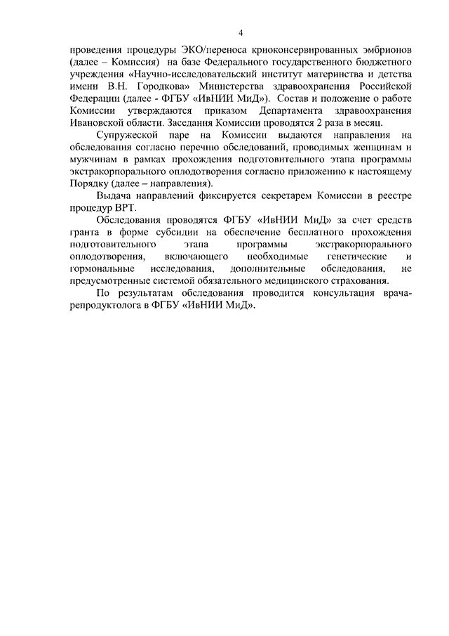 Постановление Правительства Ивановской области от 28.12.2024 N 690-п "О реализации мероприятия по проведению обследований женщин и мужчин в рамках прохождения подготовительного этапа программы экстракорпорального оплодотворения" (вместе с "Порядком проведения обследований женщин и мужчин в рамках прохождения подготовительного этапа программы экстракорпорального оплодотворения", "Порядком предоставления из областного бюджета гранта в форме субсидии на обеспечение бесплатного прохождения подготовительного этапа программы экстракорпорального оплодотворения, включающего необходимые генетические и гормональные исследования, дополнительные обследования, не предусмотренные системой обязательного медицинского страхования")