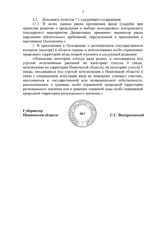 Постановление Правительства Ивановской области от 21.01.2025 N 8-п "О внесении изменений в постановление Правительства Ивановской области от 13.12.2021 N 605-п "Об утверждении Положения о региональном государственном контроле (надзоре) в области охраны и использования особо охраняемых природных территорий"