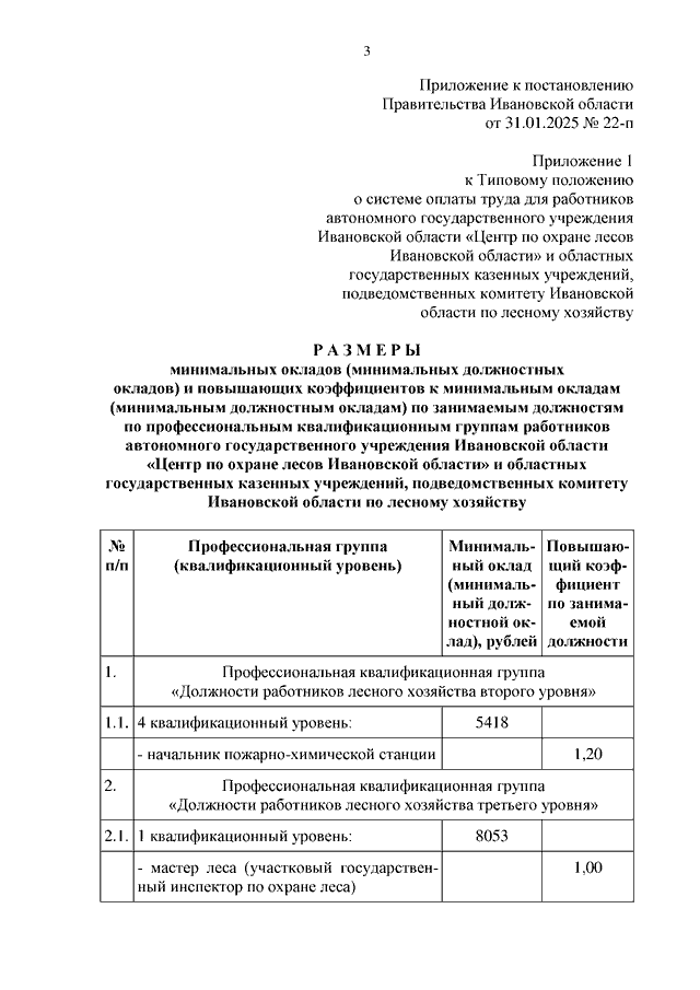 Постановление Правительства Ивановской области от 31.01.2025 N 22-п "О внесении изменения в постановление Правительства Ивановской области от 31.12.2008 N 365-п "О системе оплаты труда работников автономных государственных учреждений Ивановской области и областных государственных казенных учреждений, подведомственных комитету Ивановской области по лесному хозяйству"