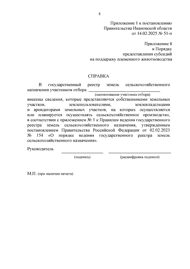Постановление Правительства Ивановской области от 14.02.2025 N 51-п "О внесении изменений в постановления Правительства Ивановской области от 22.02.2024 N 56-п "Об утверждении Порядка предоставления субсидий на поддержку племенного животноводства" и от 22.02.2024 N 57-п "Об утверждении Порядка предоставления субсидий на поддержку производства молока"