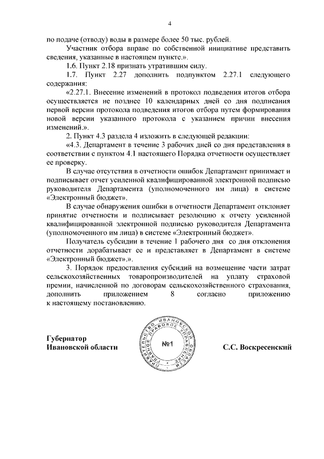 Постановление Правительства Ивановской области от 14.02.2025 N 46-п "О внесении изменений в постановление Правительства Ивановской области от 20.05.2024 N 217-п "Об утверждении Порядка предоставления субсидий на возмещение части затрат сельскохозяйственных товаропроизводителей на уплату страховой премии, начисленной по договорам сельскохозяйственного страхования"