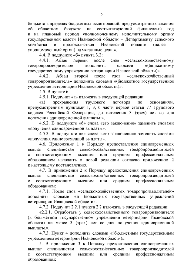 Постановление Правительства Ивановской области от 14.02.2025 N 49-п "О внесении изменений в постановление Правительства Ивановской области от 04.08.2009 N 232-п "Об утверждении порядков предоставления единовременных выплат выпускникам общеобразовательных организаций, профессиональных образовательных организаций, получившим в указанных организациях соответствующие документы об образовании, о квалификации, работающим у сельскохозяйственных товаропроизводителей, в машинно-технологических (тракторных) станциях, а также специалистам сельскохозяйственных товаропроизводителей с соответствующим высшим или средним профессиональным образованием"