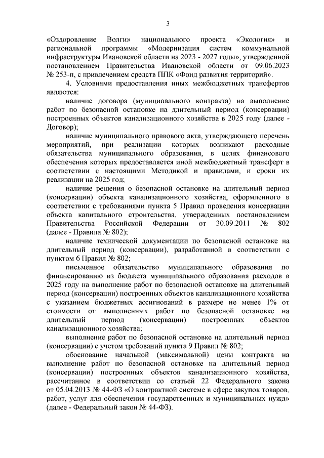 Постановление Правительства Ивановской области от 05.03.2025 N 79-п "Об установлении расходного обязательства и внесении изменений в постановление Правительства Ивановской области от 06.12.2017 N 458-п "Об утверждении государственной программы Ивановской области "Обеспечение услугами жилищно-коммунального хозяйства населения Ивановской области" (вместе с "Методикой распределения и правилами предоставления из областного бюджета бюджетам муниципальных образований Ивановской области иных межбюджетных трансфертов на софинансирование, в том числе в полном объеме, расходных обязательств муниципальных образований Ивановской области, возникших в 2025 году при выполнении работ по безопасной остановке на длительный период (консервации) построенных объектов канализационного хозяйства")