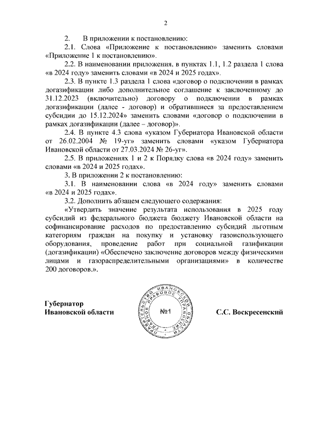 Постановление Правительства Ивановской области от 21.03.2025 N 103-п "О внесении изменений в постановление Правительства Ивановской области от 22.02.2024 N 52-п "О дополнительной мере социальной поддержки граждан в виде предоставления субсидий льготным категориям граждан на покупку и установку газоиспользующего оборудования, проведение работ внутри границ их земельных участков в рамках реализации мероприятий по осуществлению подключения (технологического присоединения) газоиспользующего оборудования и объектов капитального строительства к газораспределительным сетям при догазификации в Ивановской области в 2024 году"