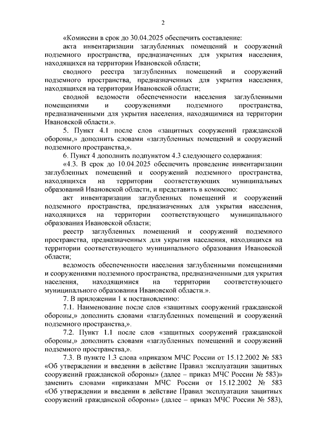 Постановление Правительства Ивановской области от 27.03.2025 N 113-п "О внесении изменений в постановление Правительства Ивановской области от 11.11.2024 N 539-п "О комиссии по проведению инвентаризации защитных сооружений гражданской обороны, находящихся на территории Ивановской области"