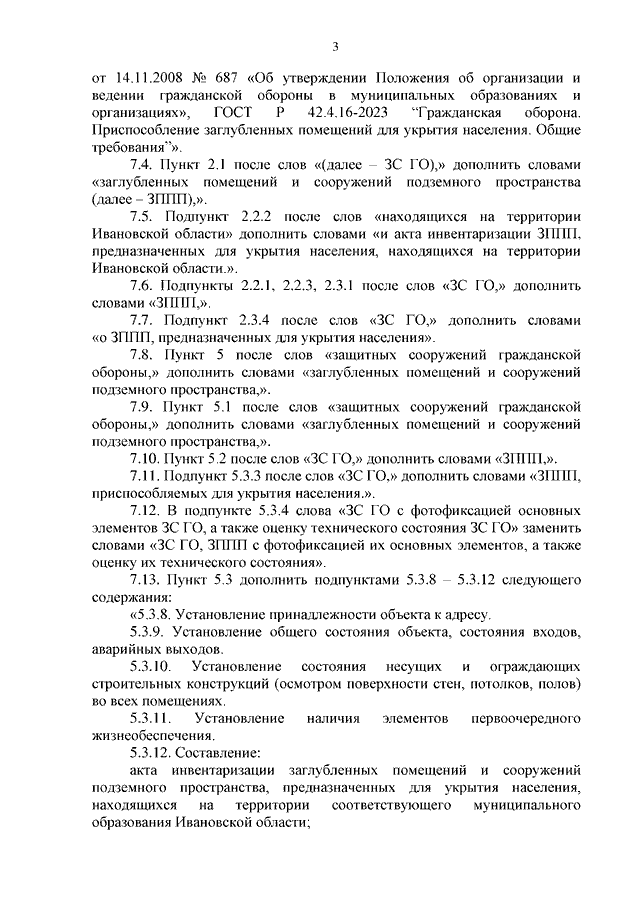 Постановление Правительства Ивановской области от 27.03.2025 N 113-п "О внесении изменений в постановление Правительства Ивановской области от 11.11.2024 N 539-п "О комиссии по проведению инвентаризации защитных сооружений гражданской обороны, находящихся на территории Ивановской области"