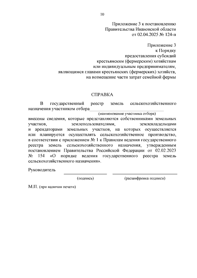 Постановление Правительства Ивановской области от 02.04.2025 N 124-п "О внесении изменений в постановление Правительства Ивановской области от 26.12.2024 N 665-п "Об утверждении Порядка предоставления субсидий крестьянским (фермерским) хозяйствам или индивидуальным предпринимателям, являющимся главами крестьянских (фермерских) хозяйств, на возмещение части затрат семейной фермы"