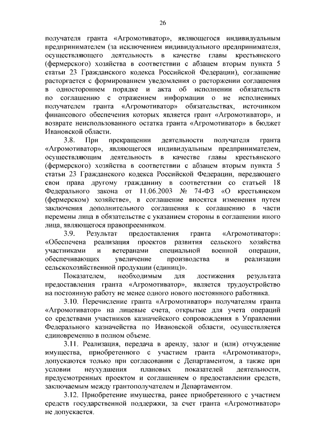 Постановление Правительства Ивановской области от 03.04.2025 N 127-п "Об утверждении Порядка предоставления грантов "Агромотиватор" ветеранам и участникам специальной военной операции, связанных с началом осуществления ими предпринимательской деятельности в агропромышленном комплексе"