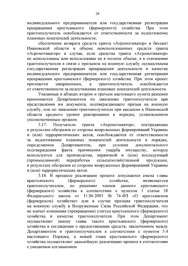Постановление Правительства Ивановской области от 03.04.2025 N 127-п "Об утверждении Порядка предоставления грантов "Агромотиватор" ветеранам и участникам специальной военной операции, связанных с началом осуществления ими предпринимательской деятельности в агропромышленном комплексе"
