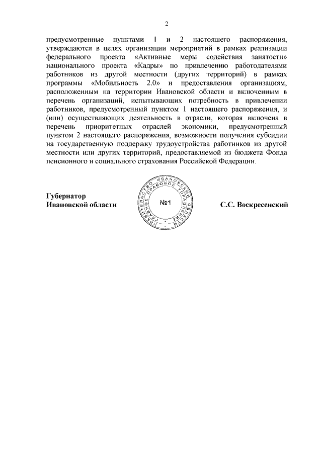 Распоряжение Правительства Ивановской области от 29.04.2025 N 43-рп "Об утверждении перечня организаций, испытывающих потребность в привлечении работников, и перечня приоритетных отраслей экономики в целях организации мероприятий в рамках реализации федерального проекта "Активные меры содействия занятости" национального проекта "Кадры"