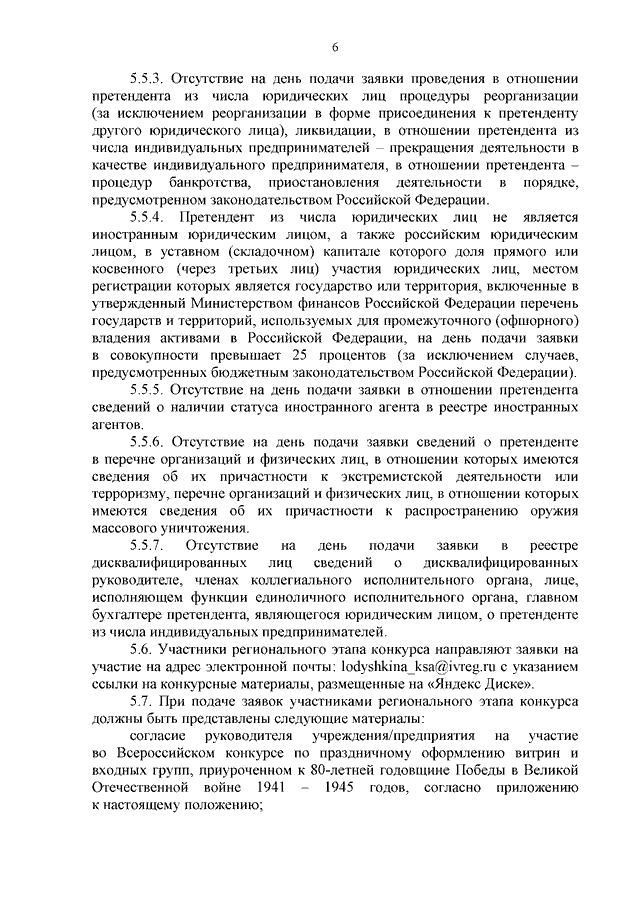 Распоряжение Правительства Ивановской области от 07.05.2025 N 46-рп "О проведении регионального этапа Всероссийского конкурса по праздничному оформлению витрин и входных групп, приуроченного к 80-летней годовщине Победы в Великой Отечественной войне 1941 - 1945 годов" (вместе с "Положением о проведении регионального этапа Всероссийского конкурса по праздничному оформлению витрин и входных групп, приуроченного к 80-летней годовщине Победы в Великой Отечественной войне 1941 - 1945 годов", "Положением об Организационном комитете по проведению регионального этапа Всероссийского конкурса по праздничному оформлению витрин и входных групп, приуроченного к 80-летней годовщине Победы в Великой Отечественной войне 1941 - 1945 годов")