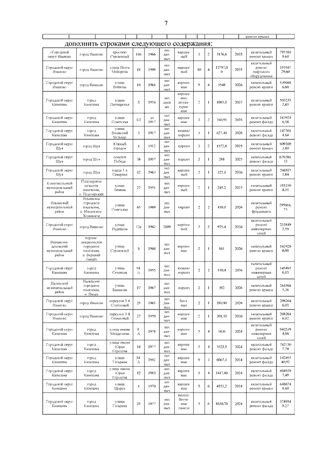 Постановление Правительства Ивановской области от 19.05.2025 N 193-п "О внесении изменения в постановление Правительства Ивановской области от 25.03.2024 N 106-п "Об утверждении краткосрочного плана реализации региональной программы капитального ремонта общего имущества в многоквартирных домах, расположенных на территории Ивановской области, на 2024 - 2026 годы"