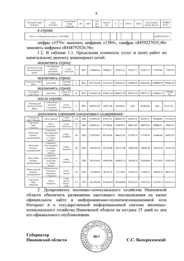 Постановление Правительства Ивановской области от 19.05.2025 N 193-п "О внесении изменения в постановление Правительства Ивановской области от 25.03.2024 N 106-п "Об утверждении краткосрочного плана реализации региональной программы капитального ремонта общего имущества в многоквартирных домах, расположенных на территории Ивановской области, на 2024 - 2026 годы"