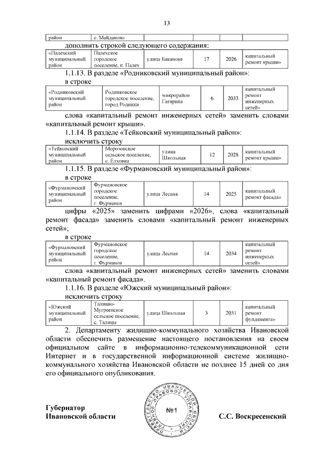 Постановление Правительства Ивановской области от 19.05.2025 N 190-п "О внесении изменений в постановление Правительства Ивановской области от 30.04.2014 N 164-п "Об утверждении региональной программы капитального ремонта общего имущества в многоквартирных домах, расположенных на территории Ивановской области"