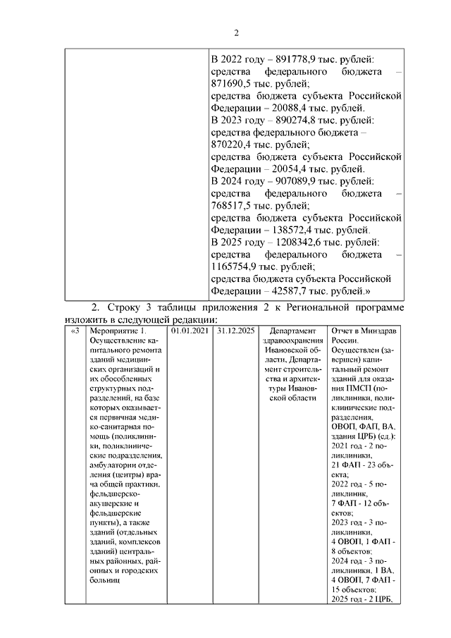 Постановление Правительства Ивановской области от 21.05.2025 N 199-п "О внесении изменений в постановление Правительства Ивановской области от 15.12.2020 N 626-п "Об утверждении Региональной программы модернизации первичного звена здравоохранения Ивановской области на 2021 - 2025 годы"
