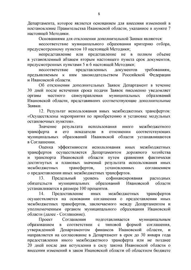 Постановление Правительства Ивановской области от 02.06.2025 N 202-п "О внесении изменений в постановление Правительства Ивановской области от 13.11.2013 N 447-п "Об утверждении государственной программы Ивановской области "Развитие транспортной системы Ивановской области" (вместе с "Методикой распределения и правилами предоставления иных межбюджетных трансфертов бюджетам муниципальных образований Ивановской области на приобретение и установку модульных остановочных пунктов")
